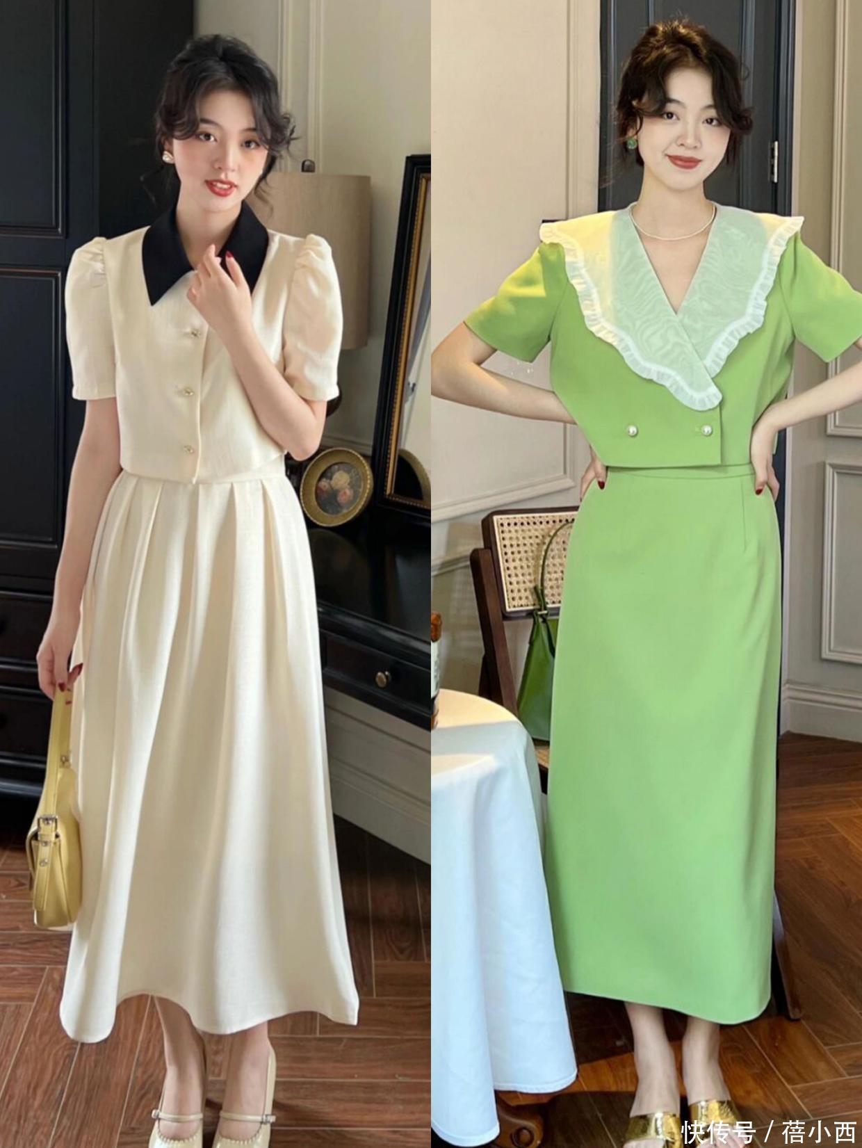半身裙套装就是比较适合“懒人”的选项了,它以套装的形式呈现,就是为了让你更轻松地穿出时尚感,对刚入门的小白、穿搭意识比较薄弱的女性很是友好。整体色调会决定风格,白色系比较简约,绿色系看起来更显清新,在炎热的夏季选择它也是很不错的选择。