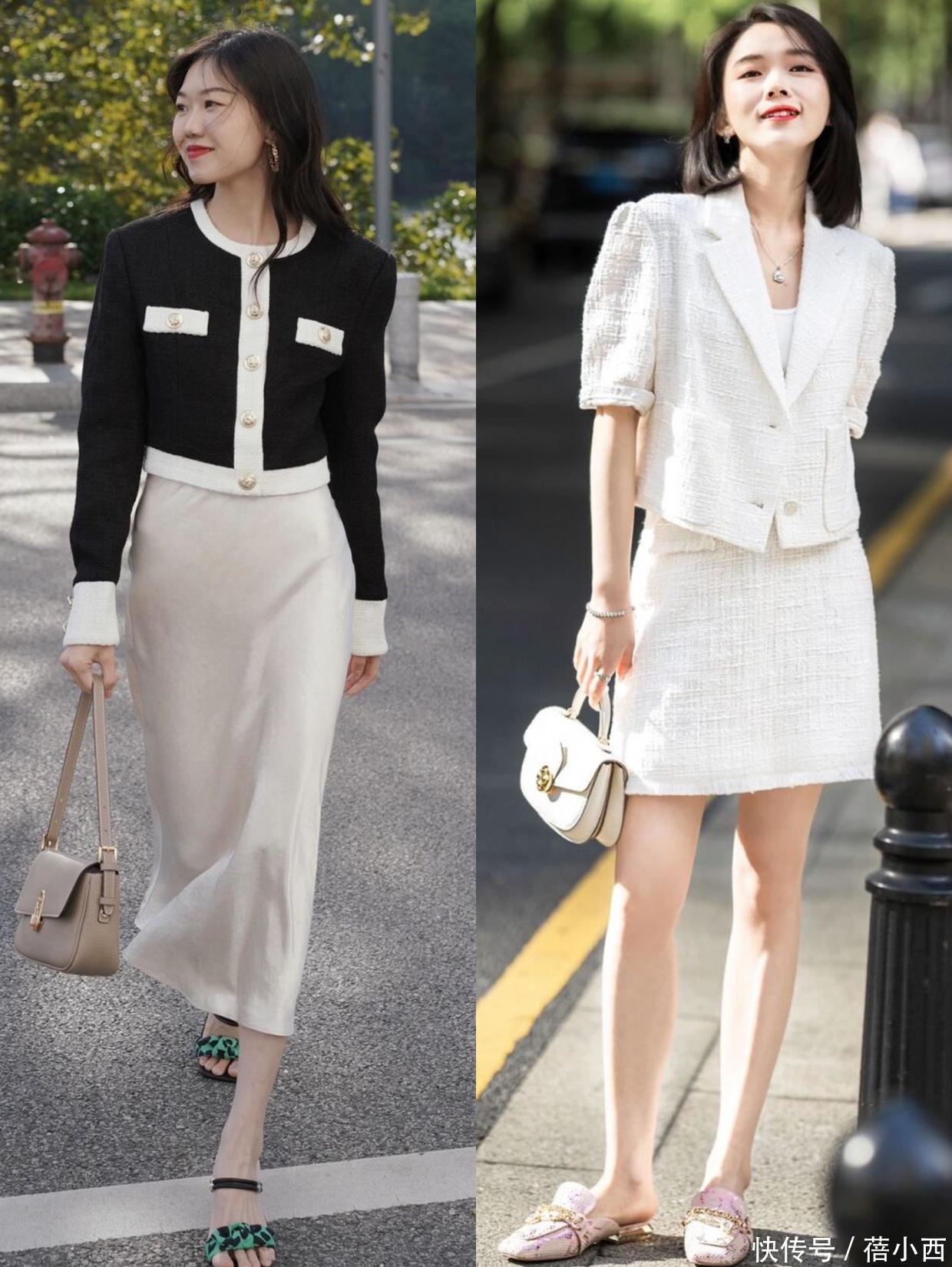 小香风外套是各位精致lady与名媛们的最爱,一年四季都有它的身影。它的风格特征明显,会融入基础色面料勾边的设计,不管是针织质地还是粗花呢质地都透露着一股高贵,还会利用金属纽扣提升质感,这时再搭配一条半身裙,就能将你的女人味淋漓尽致的展现。