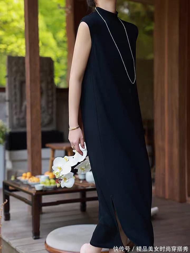 这个面料是垂感且弹力很好的一块针织布,上身后特别显瘦,不需要做过多的修饰,就能带给你显瘦的既视感,非常好打理,我太爱这条黑裙子了。